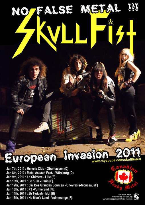 It was at the latest edition of the Keep It True festival, when I heard some people talk about a band from Toronto, Canada, called SKULL FIST. A week later I checked them out on the internet and I was very positively surprised indeed. I also found out, that they have a female drummer in Alison Thunderland. While listening to their EP "Heavier Than Metal", I knew that this band would be perfect to introduce to you readers by means of an interview. SKULL FIST plays metal how it's meant to be played. You see bands returning to their musical roots more and more these days, which a very good thing. This band fits the description very well and I can't tell you how important it is to maintain that wonderful heavy metal sound, created in the early 1980's. Another reason to support a band like SKULL FIST, who are hopefully heading out to a very successful career with their heavy metal sound!